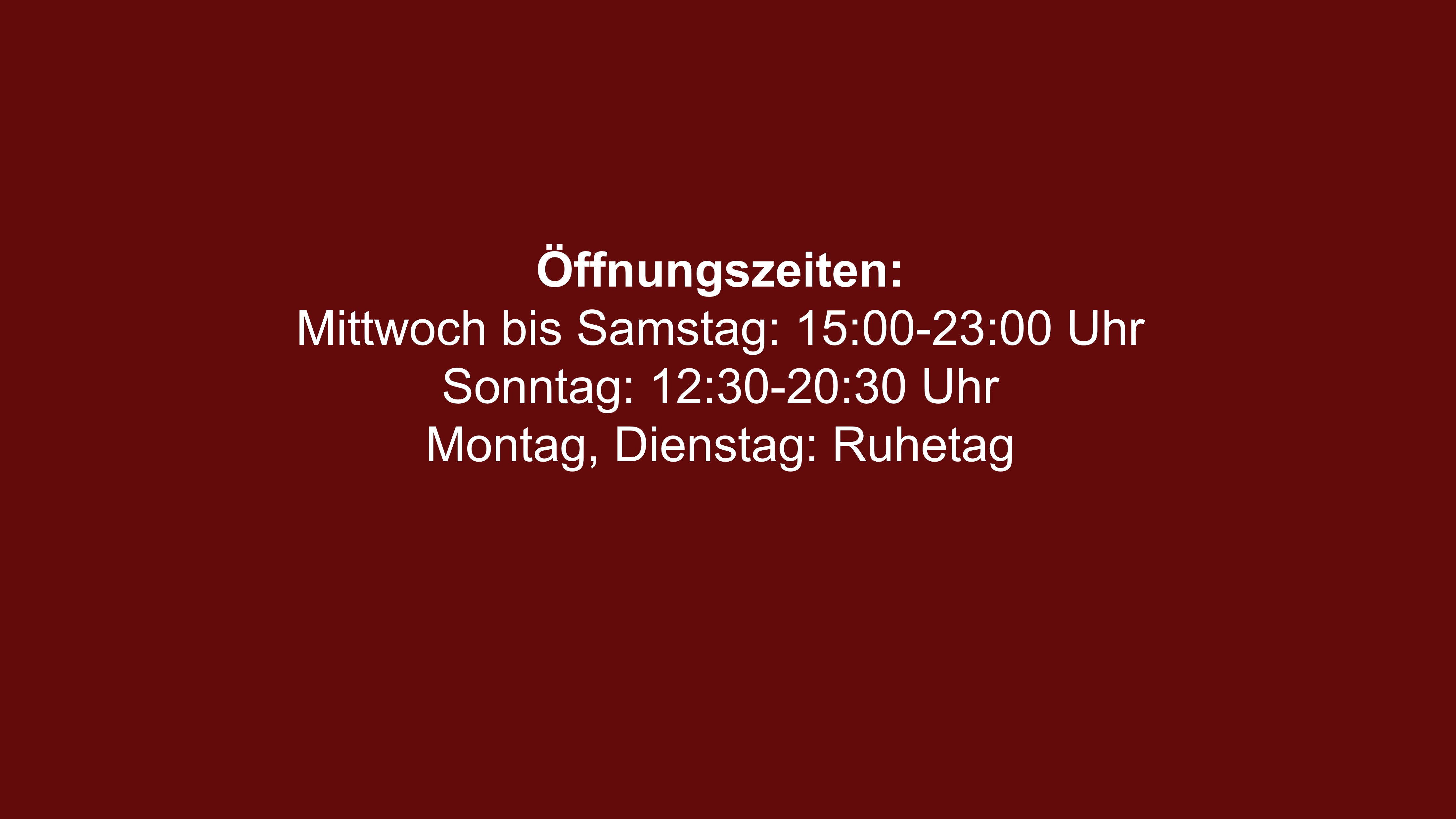 Mittwoch bis Samstag: 15:00-23:00 Uhr